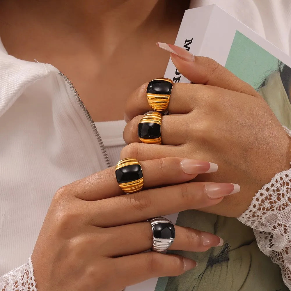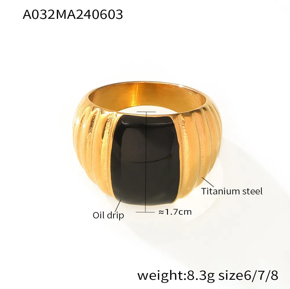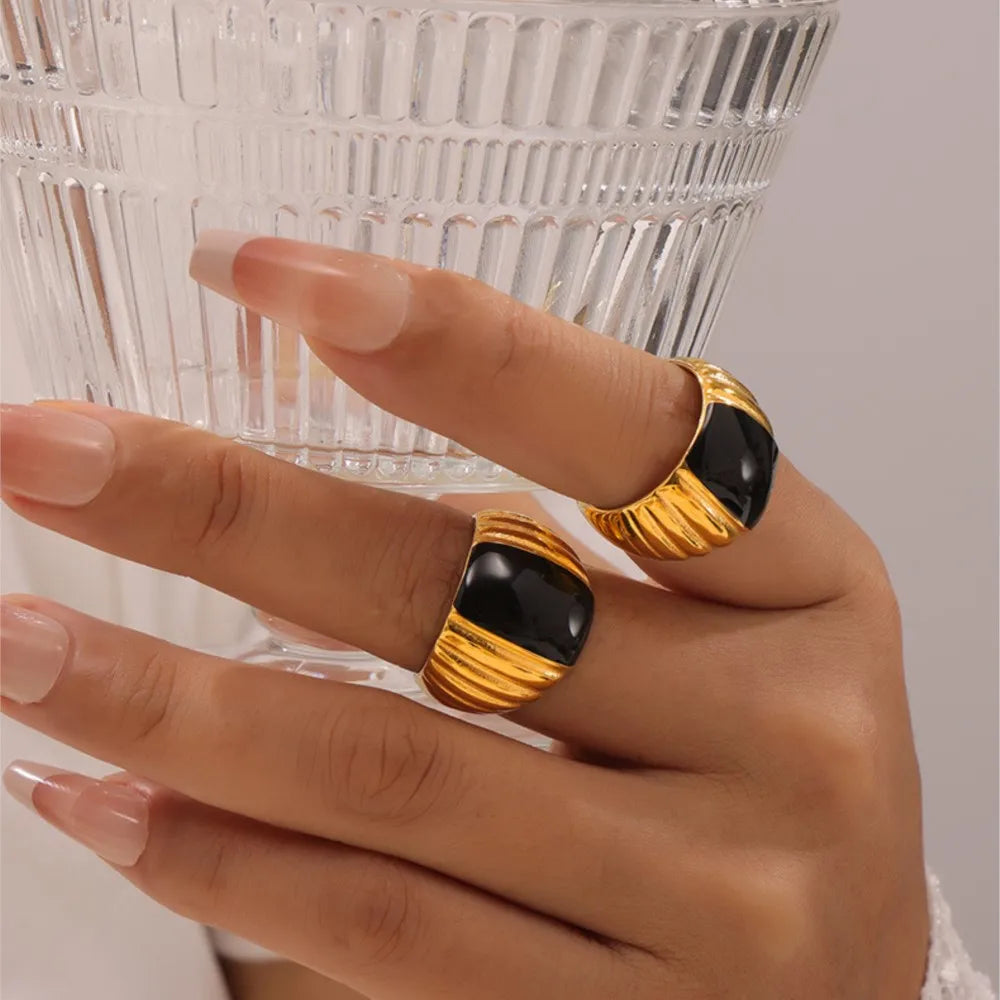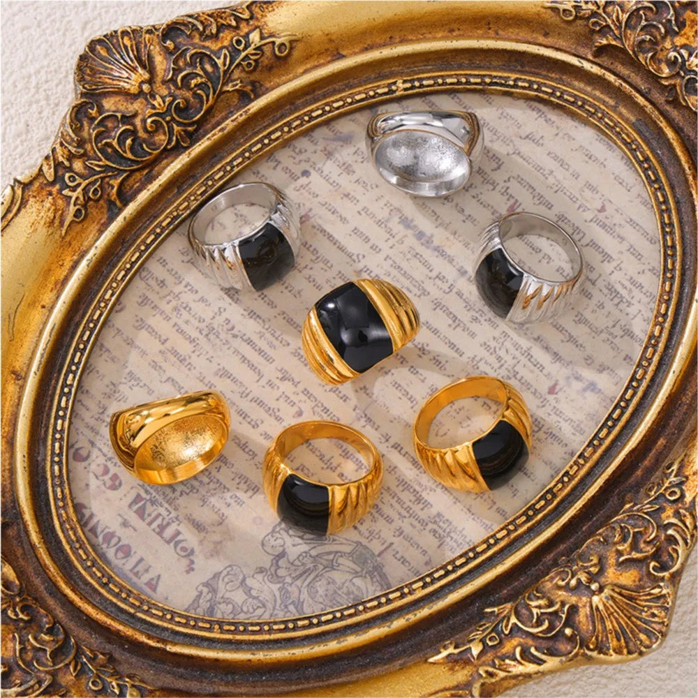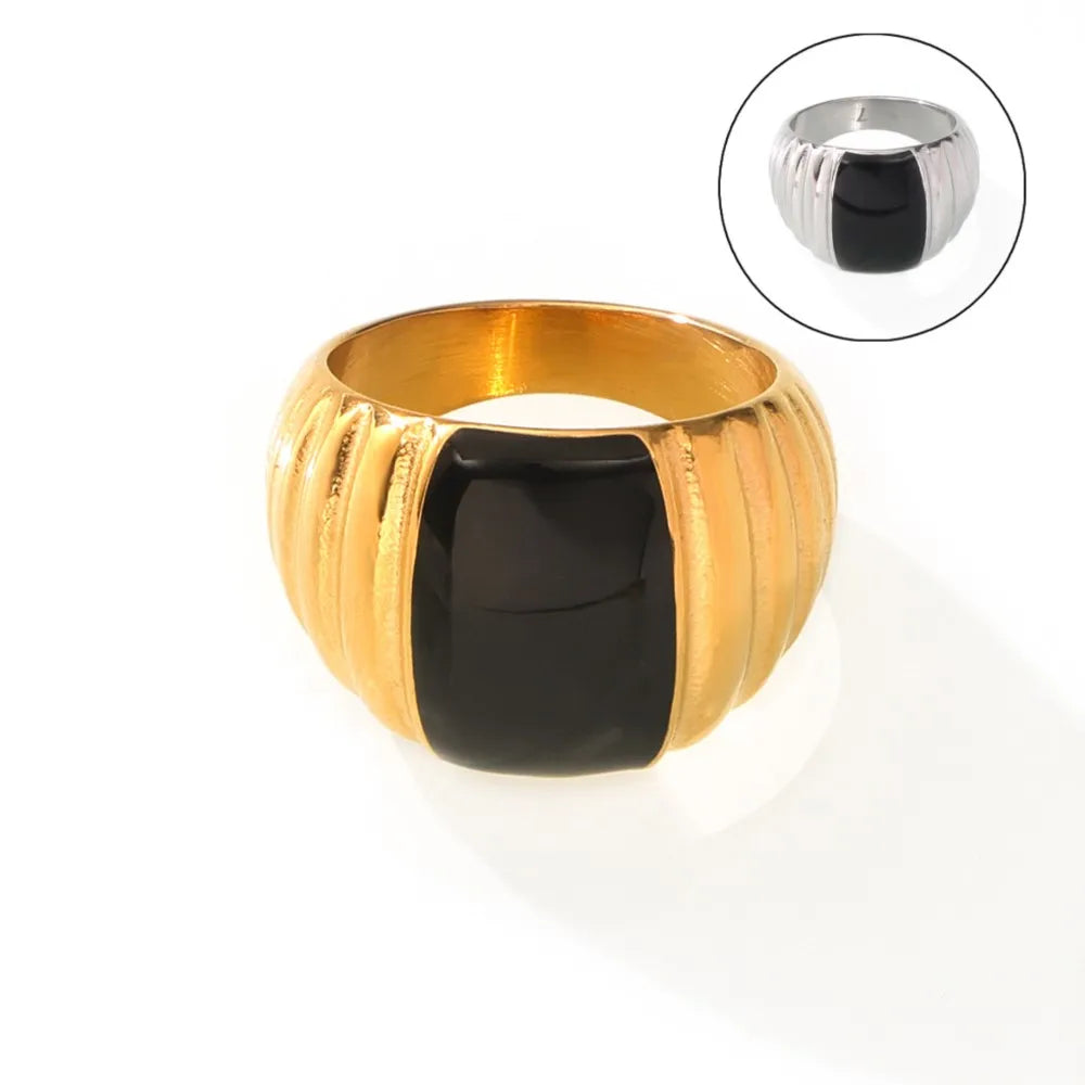 Gothic Style Black Enamel Ring for Women 316L Stainless Steel Gold Plated