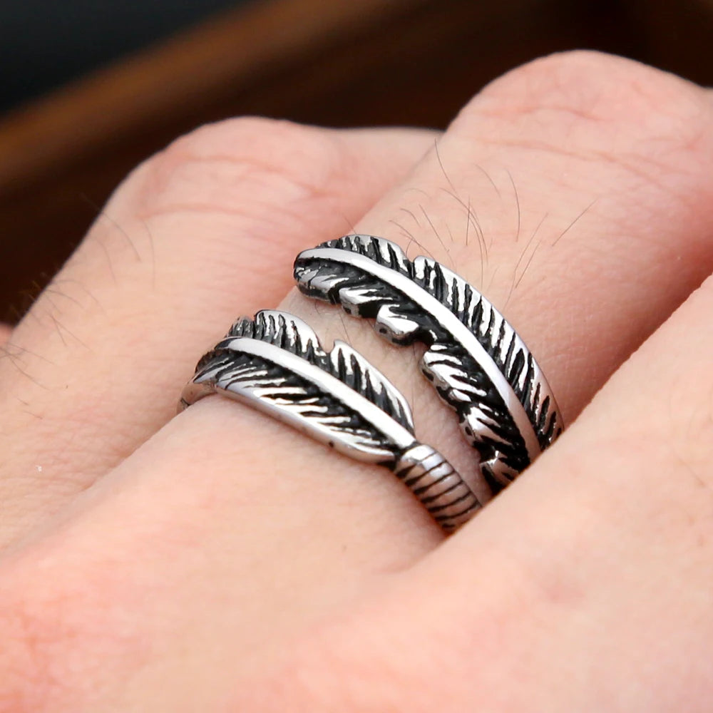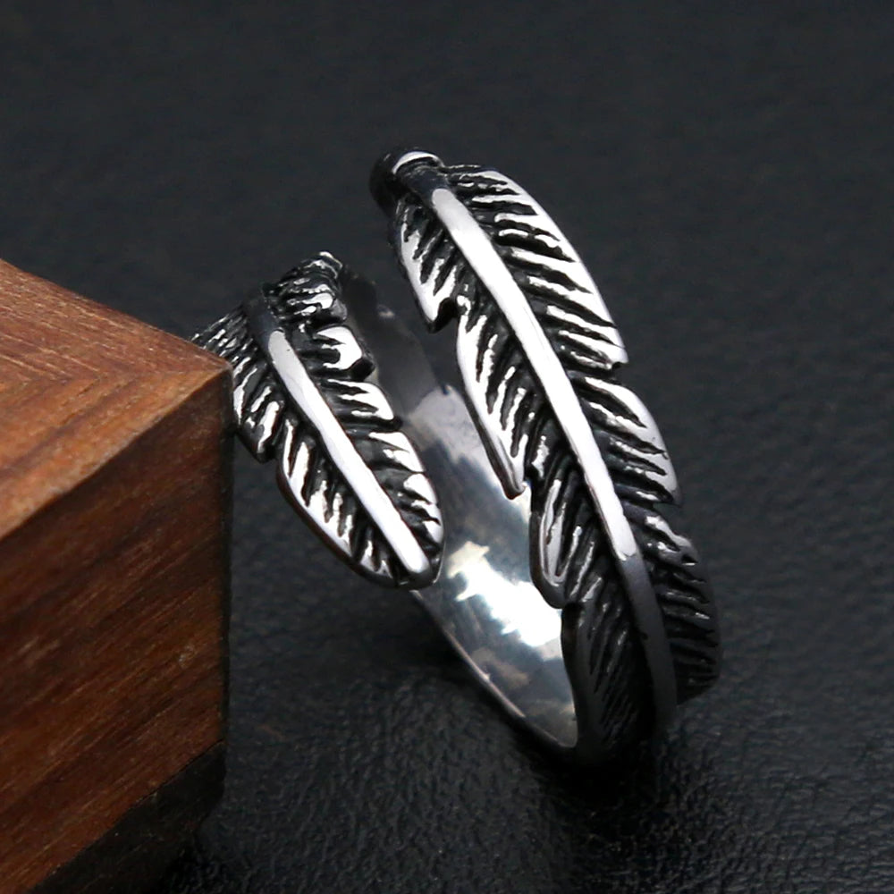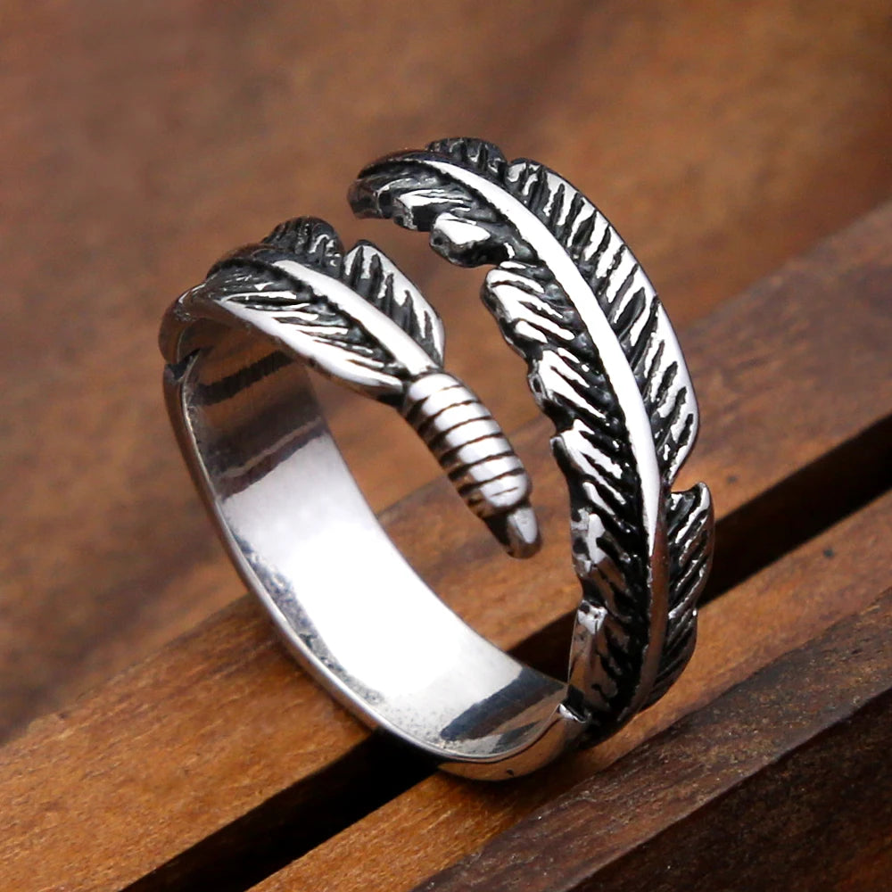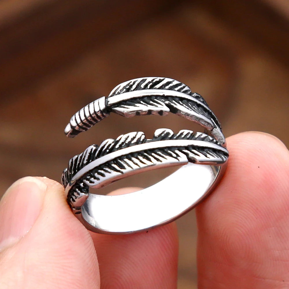 Gothic Vintage Feather Ring For Men and Women Stainless Steel Punk