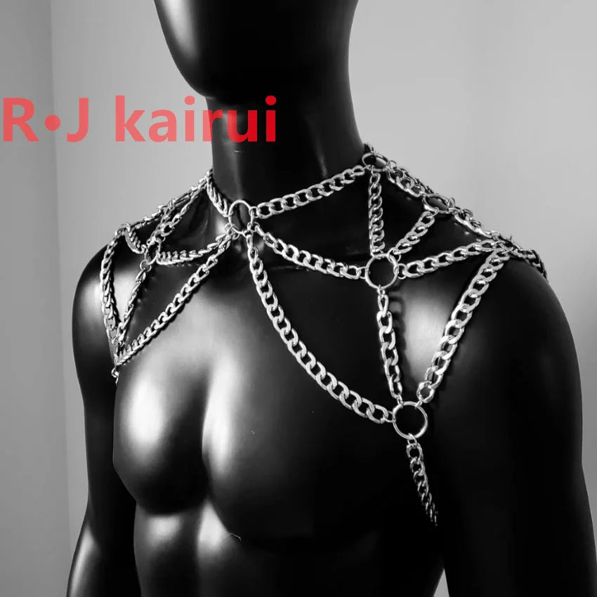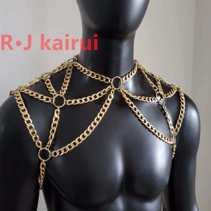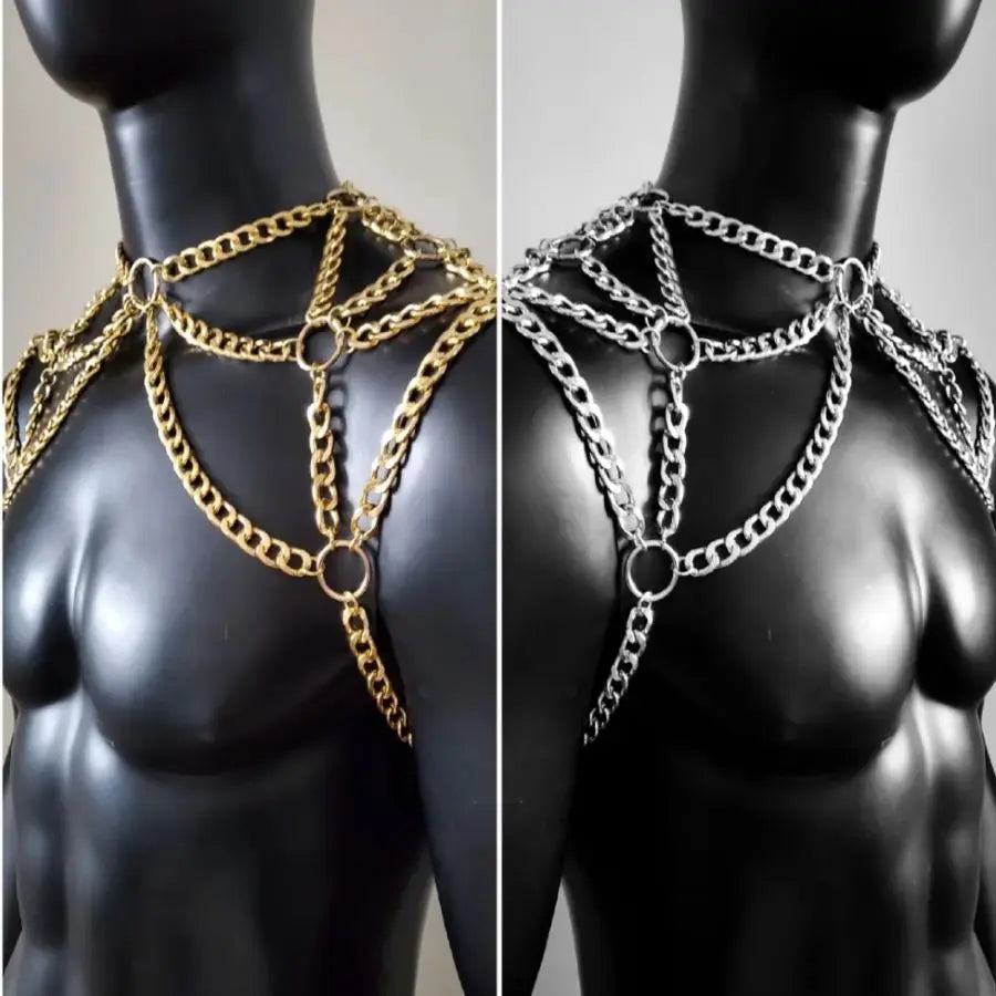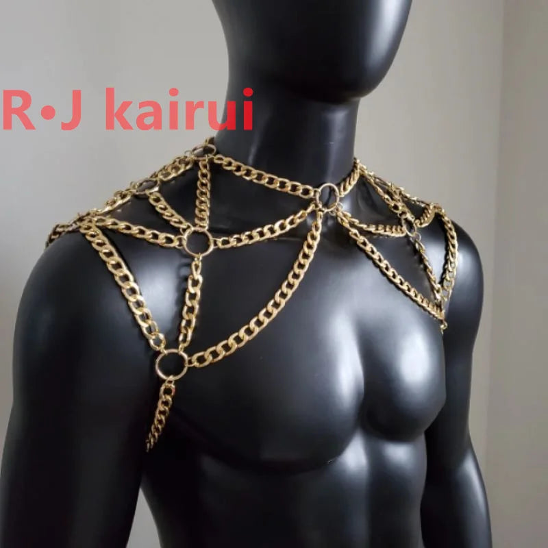 Handmade Gold Men Chains Jewelry Unique Punk Necklace Shoulder Chains Cosplay Jewelry 2 Colors