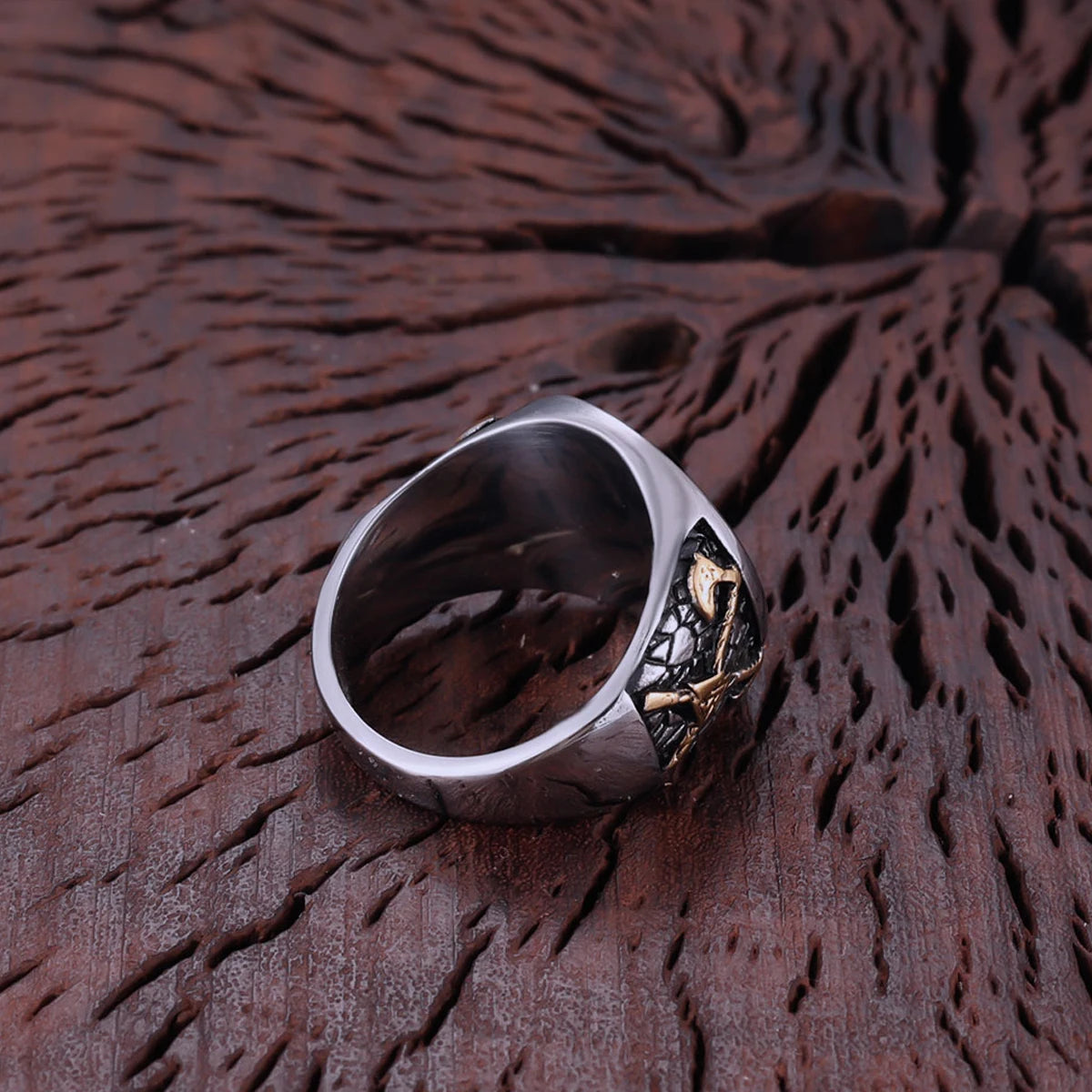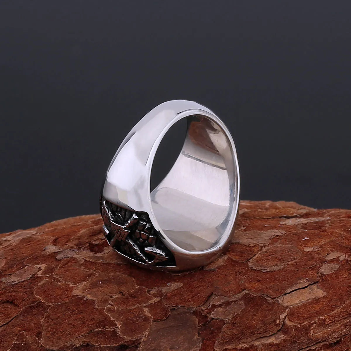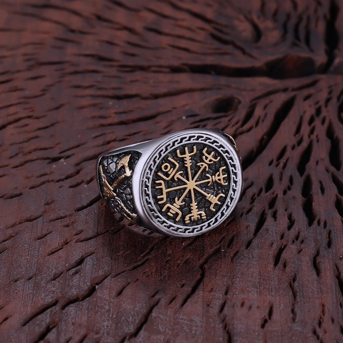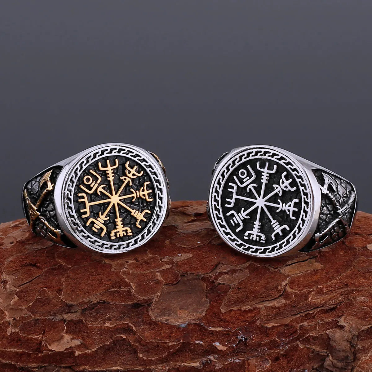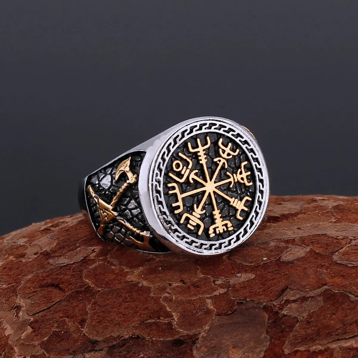 Nordic Stainless Steel Viking Compass Ring Axe Ring Gothic