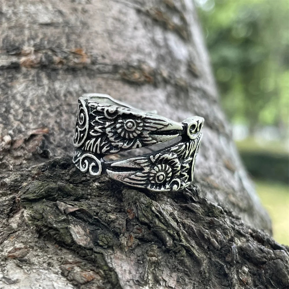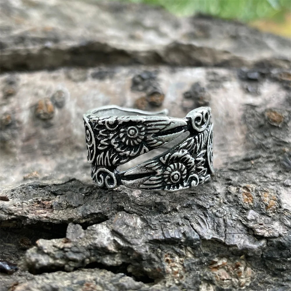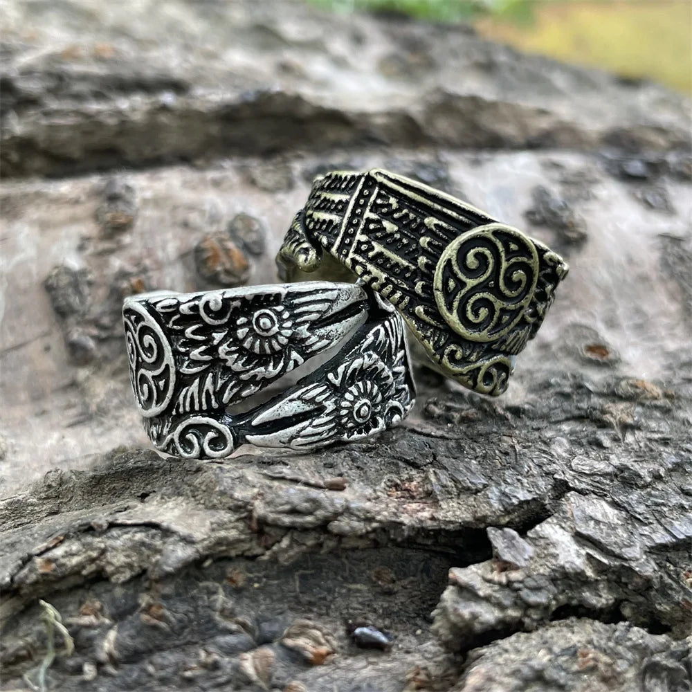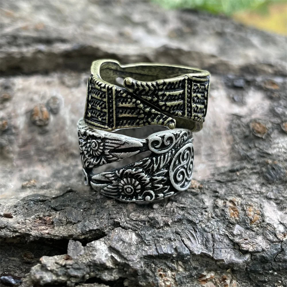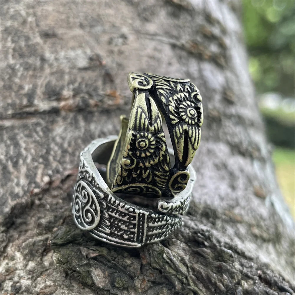 Norse Viking Odin's Raven Ring Adjustable Scandinavian Mythology Triskele Triskelion Symbol Punk Jewelry