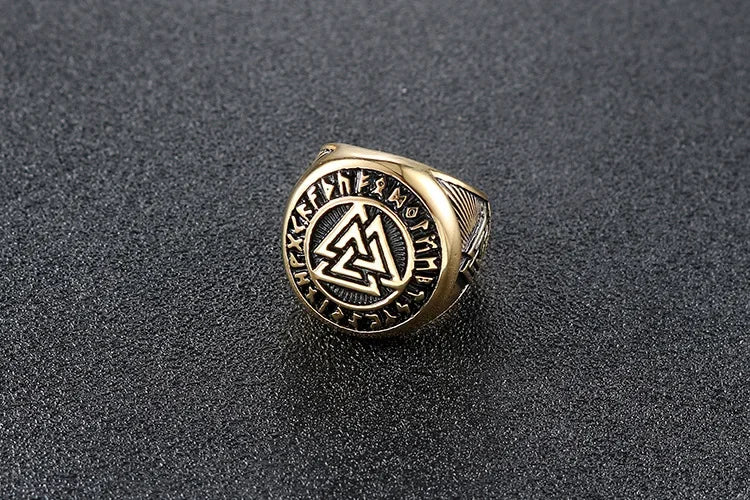 Retro Men's Rings Viking Futhark Runes Nordic Valknut Ring