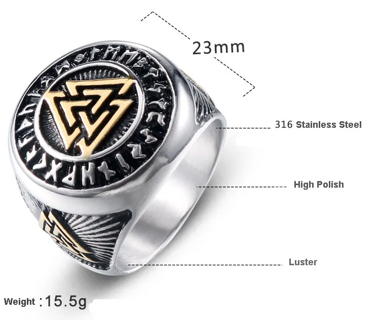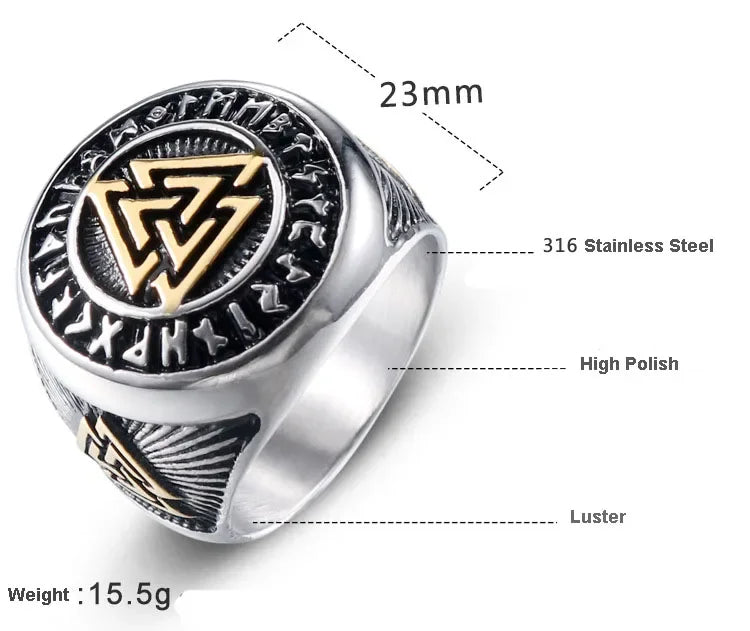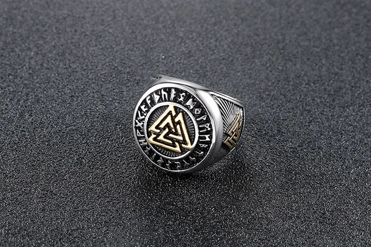 Retro Men's Rings Viking Futhark Runes Nordic Triangle Symbol Valknut Ring Stainless Steel Punk Rock Jewelry